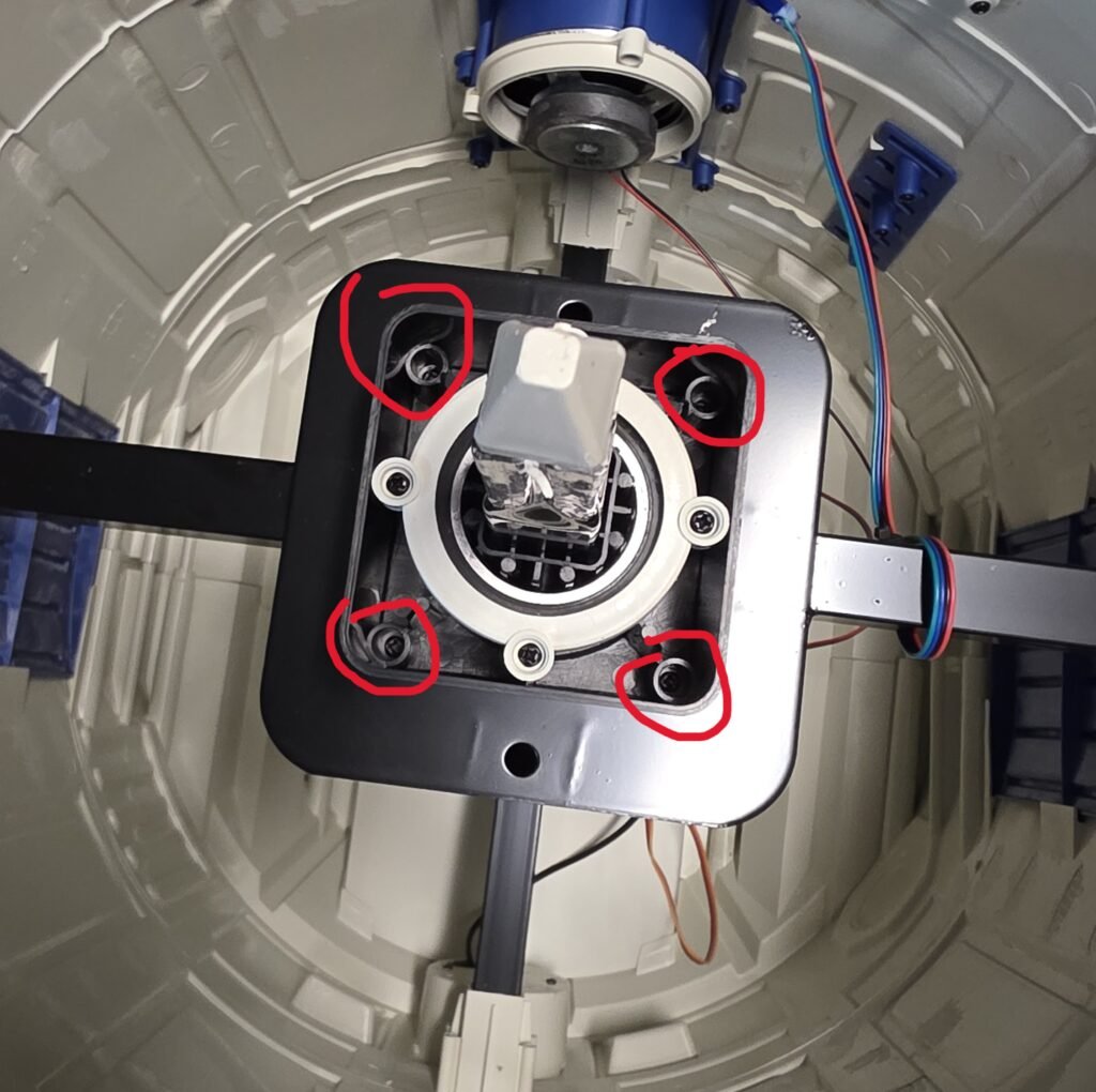Next, remove the four screws holding the old servo in place…