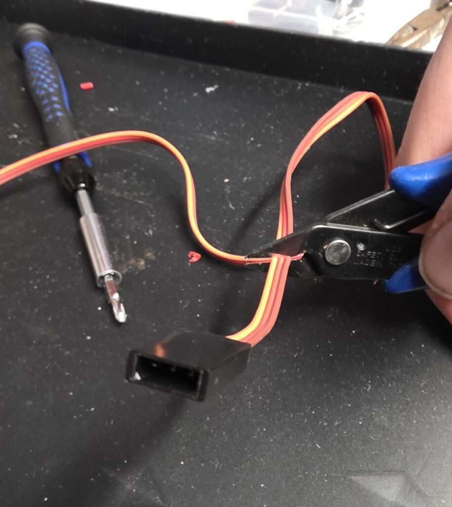 Now, cut the extension wire to give us a female end to plug the servo into.