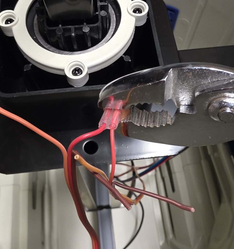 Use pliers to punch the connector down securing the wires, repeat with the outer wires…