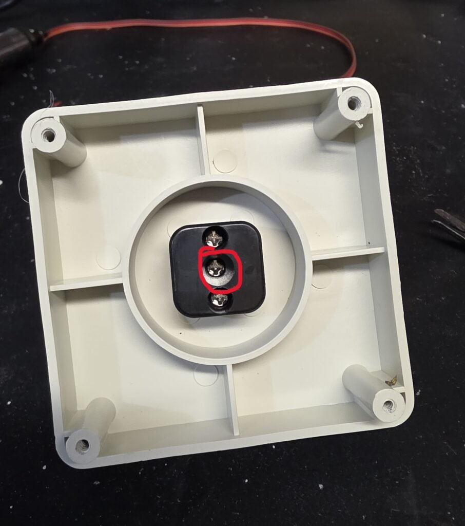 At this point, we will want to plug R2’s power adapter into the base. You should hear a quick spin of the servo to its point of center. If you do not hear this, unplug the power adapter, flip the connector over in the socket, and try again. Unplug the power connector.